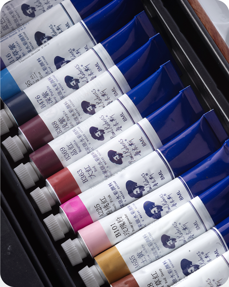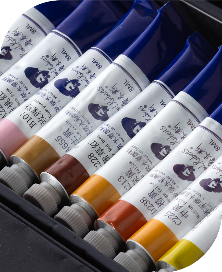 The paint undergoes multiple grinding procedures. It features a dense texture and allows easy control of paint concentration.